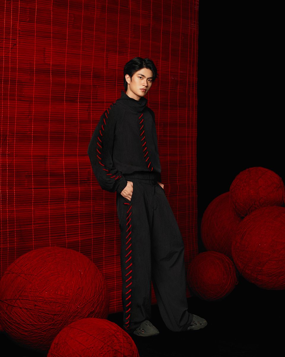 • The vibrant red stripes running along the shirt and trousers suggest vitality permeating every movement. COLOR is not just a visual impression, but also represents "Strength," resilience, and the spirit of a new beginning.